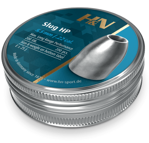 Le plomb H&N Slug HP se distingue considérablement des plombs traditionnels, en raison de sa forme de balle. Il est conçu pour les armes puissantes, pour tirer avec précision sur des cibles à 50, 100 ou même 200 mètres de distance. Un coefficient balistique (BC) extrême-ment favorable assure une trajectoire tendue et une excellente réten-tion d‘énergie. Pour s‘adapter aux différents canons et aux différents niveaux de puissance, nous offrons des options de diamètre (5,51 mm / 5,53 mm) et de poids. Recommandé pour les armes d‘une puissance en bouche de canon d‘au moins 25 joules. Résultat optimal avec les armes de puissance de 40 à 60 joules.